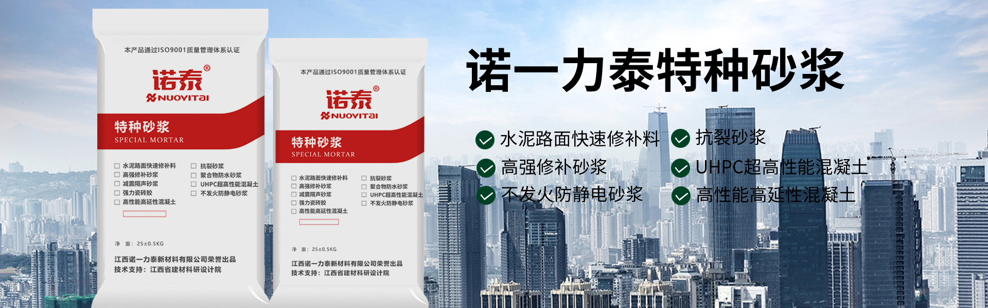 江西諾一力泰新材料有限公司位于江西宜春奉新縣,是專業從事灌漿料水泥路面修補砂漿抗裂砂漿防水砂漿保溫砂漿隔聲砂漿粘結砂漿等砂漿系列產品生產銷售的廠家。